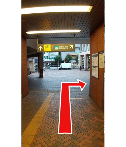 地下改札口を出て、世田谷線に向かう地下通路をお進みください。広場に出ます。